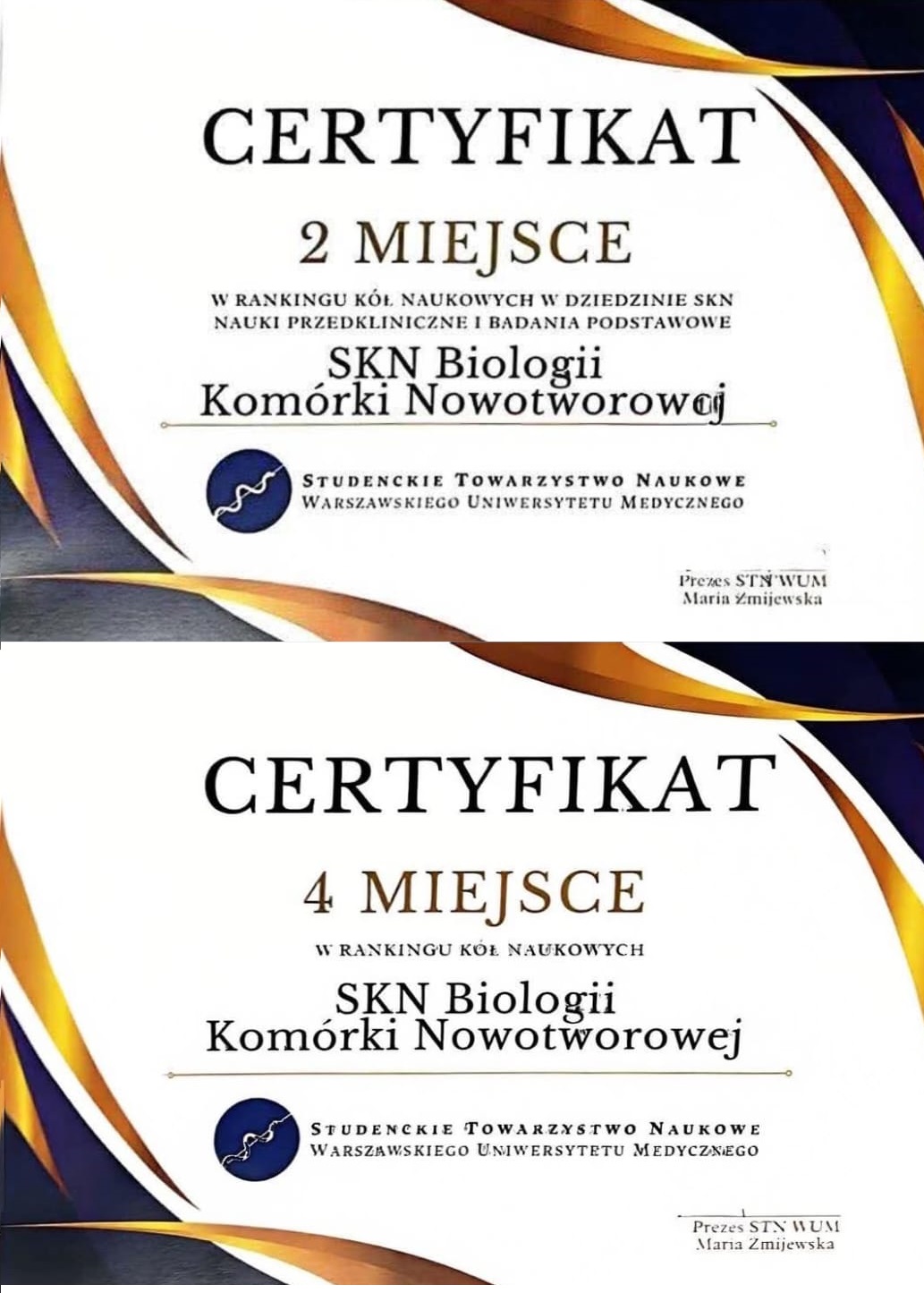 W 2025 roku w RANKINGU STUDENCKICH KÓŁ NAUKOWYCH WUM nasze Koło Naukowe Biologii Komórki Nowotworowej przy Zakładzie Propedeutyki Onkologicznej zajęło IV miejsce w rankingu Kół Naukowych, a II miejsce w rankingu Kół Naukowych w dziedzinie SKN NAUKI PRZEDKLINICZNE i BADANIA PODSTAWOWE !!